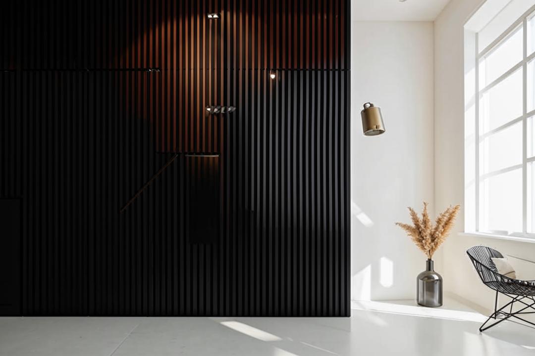 Использование черных и прочих темных реек на светлой поверхности является отличным способом акцентировать внимание на стенах и подчеркнуть геометрию помещения. Контрастные рейки на светлом фоне помогают создавать четкие линии, которые структурируют пространство, визуально увеличивают высоту потолков и оживляют дизайн.